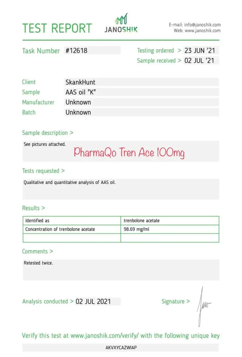 Trust requires proof, especially when researching highly potent compounds like Trenbolone. We provide access to independent, third-party laboratory reports (typically HPLC) confirming the identity, concentration (mg/mL), and purity of the Trenbolone Acetate and Trenbolone Enanthate offered. Review the analytical data for your research verification needs: